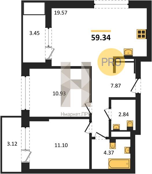 | Площадь кухни: | 19.57 м2 |