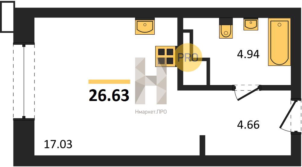 Студия: 26,63 кв.м., 12 этаж в комплексе Сибирская калина, 1 очередь, корп.1 (1,2,3,4 секции), сдача: 2кв. , этажей: 25, адрес Екатеринбург г., Монтерская ул., , Застройщик: Баланс Девелопмент.