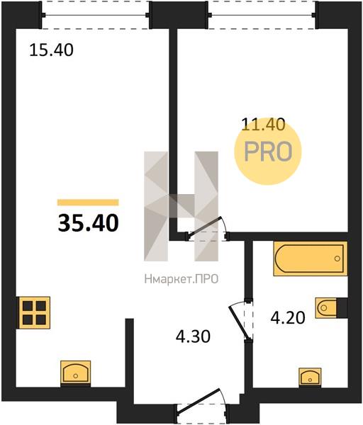 Квартира: 1 к 35,40 кв.м., 18 этаж в комплексе RAZUM на Титова, 1 очередь, корп.2, сдача: 3кв. , этажей: 29, адрес Екатеринбург г., Монтерская ул., , Застройщик: РАЗУМ.