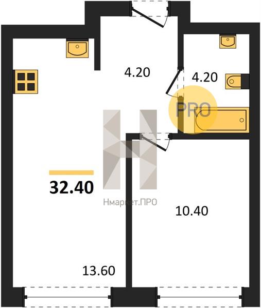 Квартира: 1 к 32,40 кв.м., 28 этаж в комплексе RAZUM на Титова, 1 очередь, корп.2, сдача: 3кв. , этажей: 29, адрес Екатеринбург г., Монтерская ул., , Застройщик: РАЗУМ.