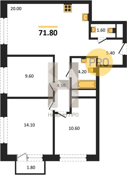 | Общая площадь: | 71.80 м2 |