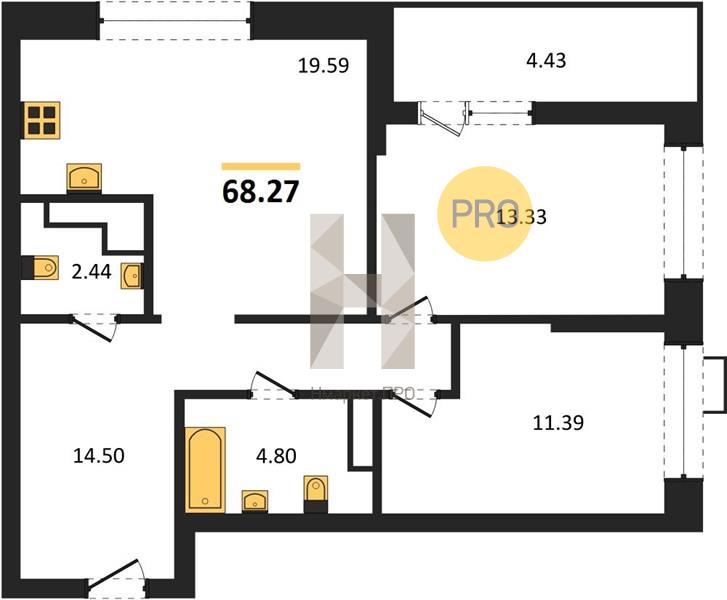 Квартира: 2 к 70,48 кв.м., 20 этаж в комплексе Сибирская калина, 1 очередь, корп.1 (1,2,3,4 секции), сдача: 2кв. , этажей: 25, адрес Екатеринбург г., Монтерская ул., , Застройщик: Баланс Девелопмент.