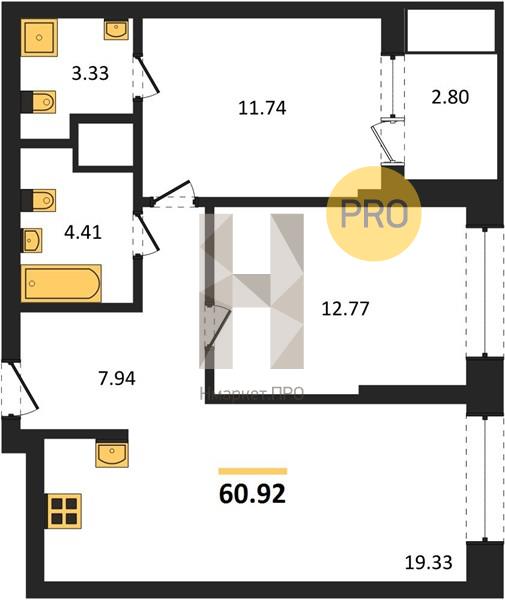 Квартира: 2 к 62,32 кв.м., 20 этаж в комплексе Сибирская калина, 1 очередь, корп.1 (1,2,3,4 секции), сдача: 2кв. , этажей: 25, адрес Екатеринбург г., Монтерская ул., , Застройщик: Баланс Девелопмент.