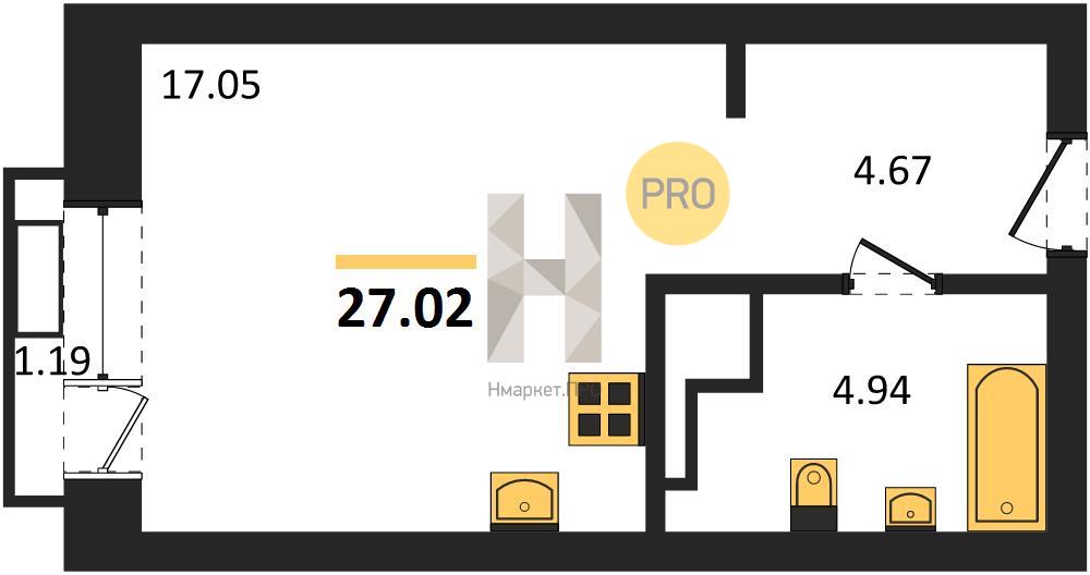 Студия: 27,85 кв.м., 5 этаж в комплексе Сибирская калина, 1 очередь, корп.1 (1,2,3,4 секции), сдача: 2кв. , этажей: 25, адрес Екатеринбург г., Монтерская ул., , Застройщик: Баланс Девелопмент.