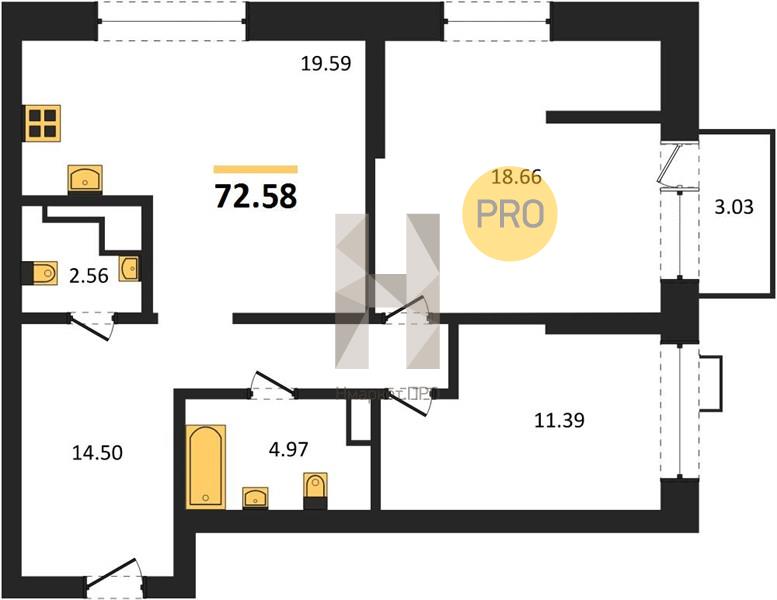 | Площадь кухни: | 19.59 м2 |