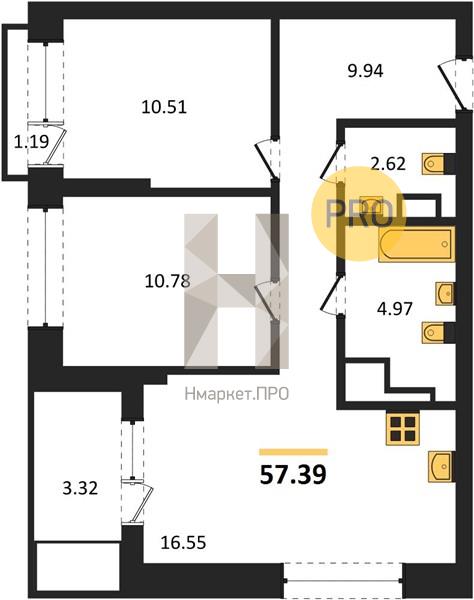 Квартира: 2 к 59,88 кв.м., 6 этаж в комплексе Сибирская калина, 1 очередь, корп.1 (1,2,3,4 секции), сдача: 2кв. , этажей: 25, адрес Екатеринбург г., Монтерская ул., , Застройщик: Баланс Девелопмент.