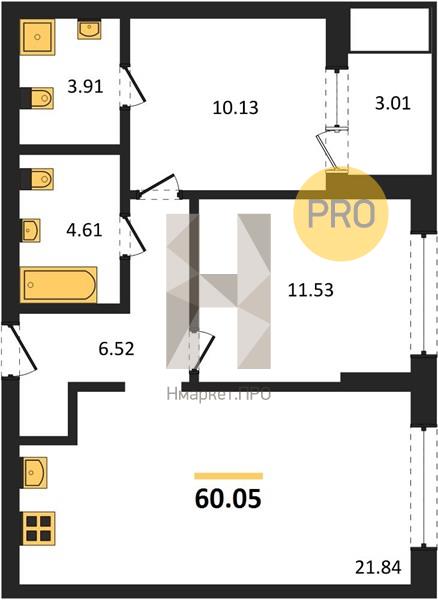 | Общая площадь: | 61.55 м2 |