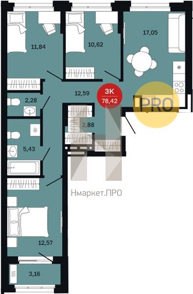 | Общая площадь: | 78.42 м2 |