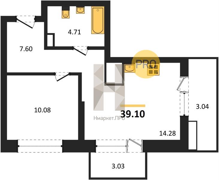 | Площадь кухни: | 14.28 м2 |