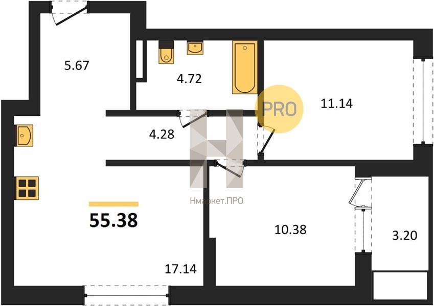 | Площадь кухни: | 17.14 м2 |