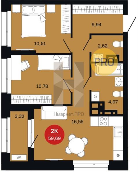 Квартира: 2 к 58,69 кв.м., 8 этаж в комплексе Сибирская калина, 1 очередь, корп.1 (1,2,3,4 секции), сдача: 2кв. , этажей: 25, адрес Екатеринбург г., Монтерская ул., , Застройщик: Баланс Девелопмент.