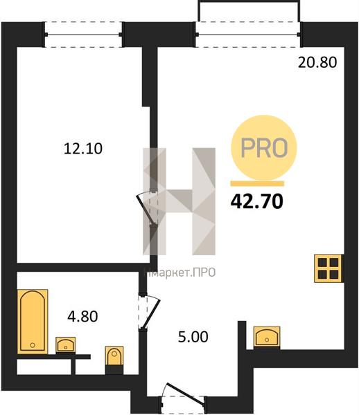 Квартира: 1 к 42,80 кв.м., 22 этаж в комплексе Парк Столиц, 4 очередь, корп.Барселона, сдача: 2кв. , этажей: 26, адрес Екатеринбург г., Московская ул., д. 251, Застройщик: ATLAS Development.