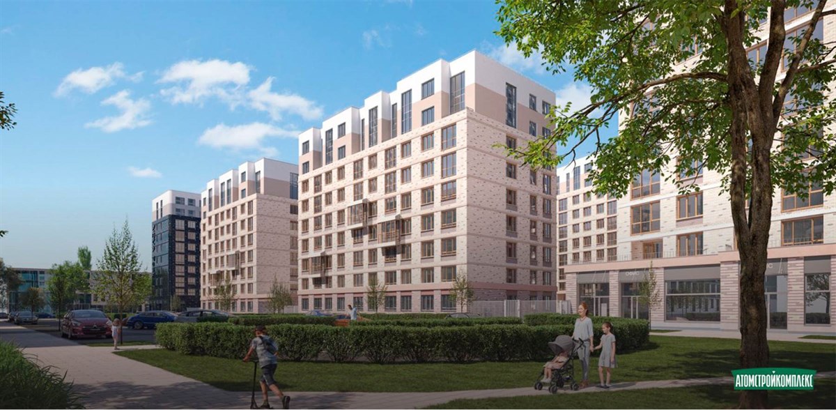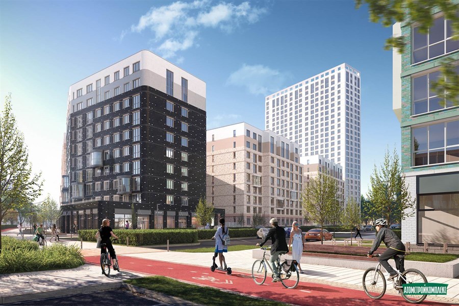 Мультиквартальный многофункциональный жилой комплекс включает в себя четыре жилых квартала, связанные зеленым пешеходным бульваром, а также торгово-развлекательную зону с наземными многоуровневыми паркингами.