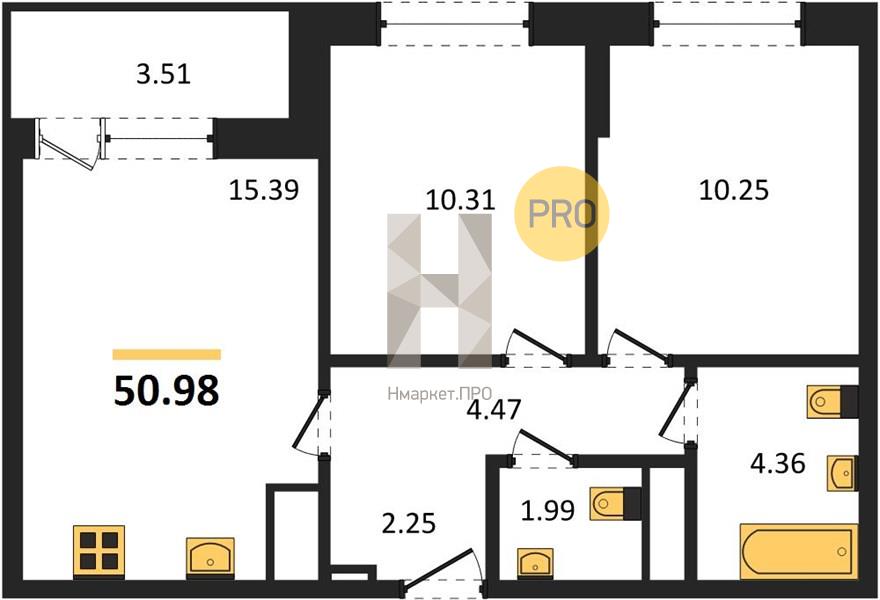 Квартира: 2 к 50,98 кв.м., 10 этаж в комплексе Новокольцовский, 1 очередь, корп.5 (2-6 секции), сдача: 2кв. , этажей: 16, адрес Екатеринбург г., Новокольцовская ул., , Застройщик: Синара.