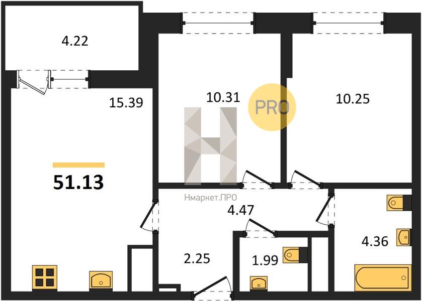 | Общая площадь: | 51.13 м2 |