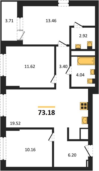 Квартира: 3 к 73,18 кв.м., 15 этаж в комплексе Новокольцовский, 1 очередь, корп.5 (2-6 секции), сдача: 2кв. , этажей: 16, адрес Екатеринбург г., Новокольцовская ул., , Застройщик: Синара.