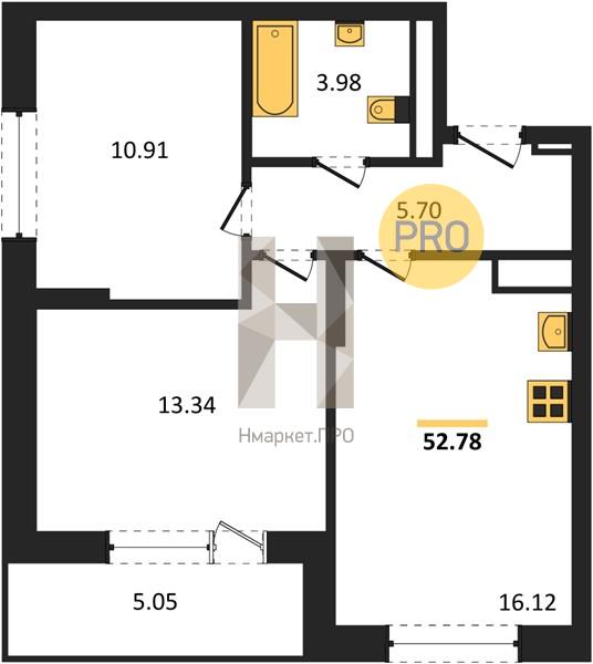 Квартира: 2 к 52,58 кв.м., 16 этаж в комплексе Новокольцовский, 1 очередь, корп.5 (2-6 секции), сдача: 2кв. , этажей: 16, адрес Екатеринбург г., Новокольцовская ул., , Застройщик: Синара.