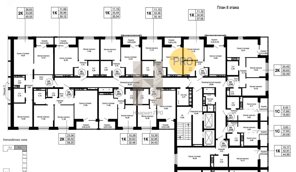 Квартира: 2 к 65,55 кв.м., 8 этаж в комплексе Новокольцовский, 1 очередь, корп.5 (2-6 секции), сдача: 2кв. , этажей: 16, адрес Екатеринбург г., Новокольцовская ул., , Застройщик: Синара.