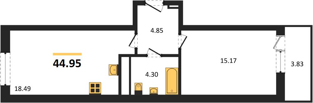 Квартира: 1 к 44,95 кв.м., 12 этаж в комплексе Новокольцовский, 1 очередь, корп.5 (2-6 секции), сдача: 2кв. , этажей: 16, адрес Екатеринбург г., Новокольцовская ул., , Застройщик: Синара.