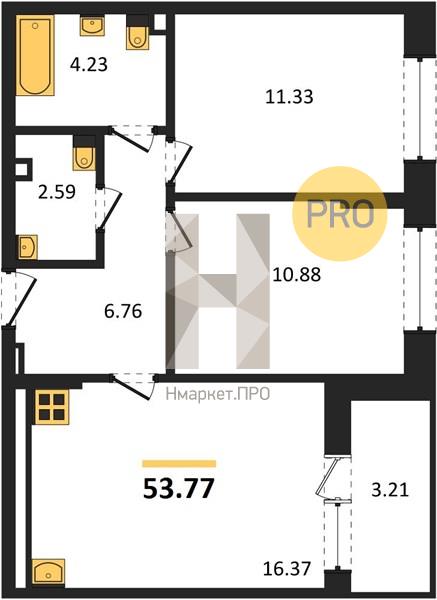 Квартира: 2 к 53,77 кв.м., 2 этаж в комплексе Новокольцовский, 1 очередь, корп.5 (2-6 секции), сдача: 2кв. , этажей: 16, адрес Екатеринбург г., Новокольцовская ул., , Застройщик: Синара.