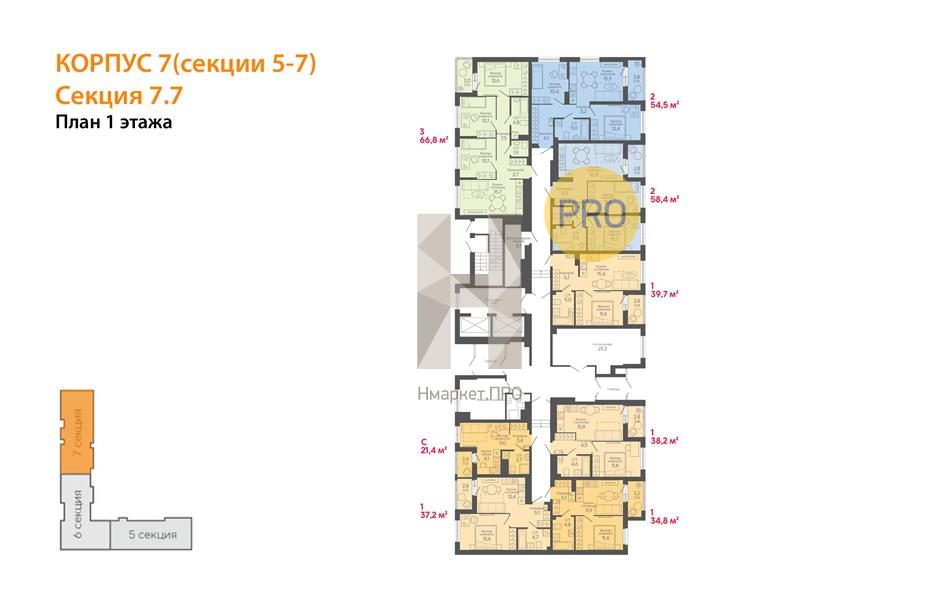 Квартира: 1 к 39,70 кв.м., 1 этаж в комплексе Новокольцовский, 1 очередь, корп.7(секции 5-7), сдача: 4кв. , этажей: 16, адрес Екатеринбург г., Новокольцовская ул., , Застройщик: Синара.