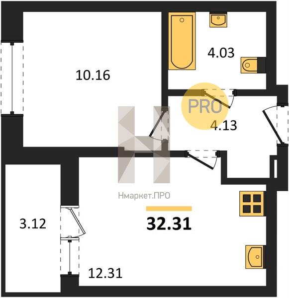 Квартира: 1 к 32,31 кв.м., 14 этаж в комплексе Новокольцовский, 1 очередь, корп.5 (2-6 секции), сдача: 2кв. , этажей: 16, адрес Екатеринбург г., Новокольцовская ул., , Застройщик: Синара.