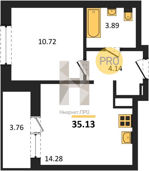 Квартира: 1 к 35,13 кв.м., 15 этаж в комплексе Новокольцовский, 1 очередь, корп.5 (2-6 секции), сдача: 2кв. , этажей: 16, адрес Екатеринбург г., Новокольцовская ул., , Застройщик: Синара.