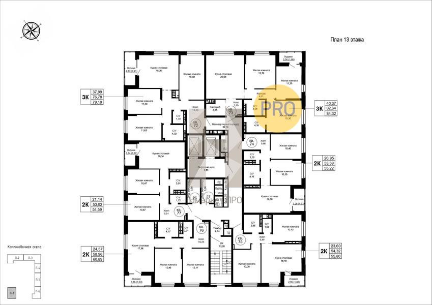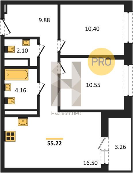 Квартира: 2 к 55,22 кв.м., 13 этаж в комплексе Новокольцовский, 1 очередь, корп.5 (1 секция), сдача: 2кв. , этажей: 16, адрес Екатеринбург г., Новокольцовская ул., , Застройщик: Синара.