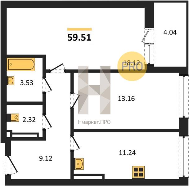 Квартира: 2 к 59,51 кв.м., 10 этаж в комплексе Есенин, 1 очередь, корп.1, сдача: 4кв. , этажей: 16, адрес Верхняя Пышма г., Огнеупорщиков ул., д. 5, литера б, Застройщик: Маркет Сервис.