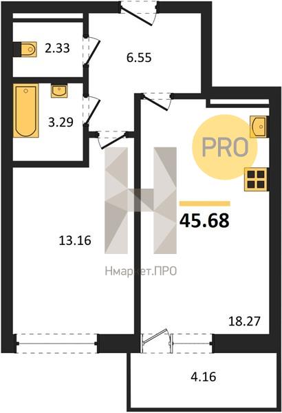 Квартира: 1 к 45,68 кв.м., 11 этаж в комплексе Есенин, 1 очередь, корп.1, сдача: 4кв. , этажей: 16, адрес Верхняя Пышма г., Огнеупорщиков ул., д. 5, литера б, Застройщик: Маркет Сервис.
