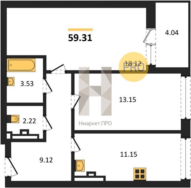 | Общая площадь: | 59.31 м2 |