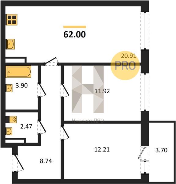 | Общая площадь: | 62.00 м2 |