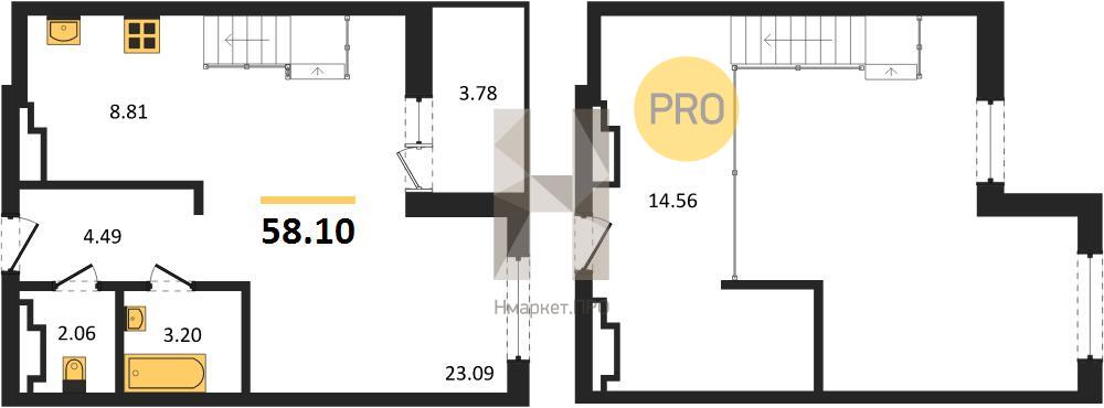 Студия: 58,10 кв.м., 16 этаж в комплексе Есенин, 1 очередь, корп.1, сдача: 4кв. , этажей: 16, адрес Верхняя Пышма г., Огнеупорщиков ул., д. 5, литера б, Застройщик: Маркет Сервис.