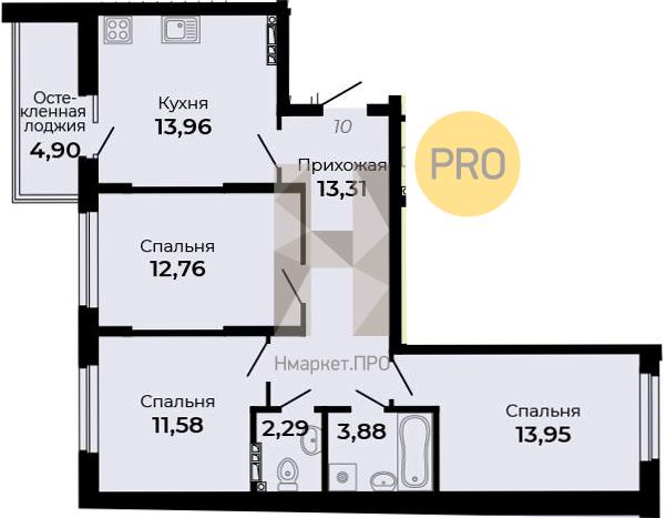 Квартира: 3 к 74,18 кв.м., 5 этаж в комплексе Есенин, 1 очередь, корп.1, сдача: 4кв. , этажей: 16, адрес Верхняя Пышма г., Огнеупорщиков ул., д. 5, литера б, Застройщик: Маркет Сервис.