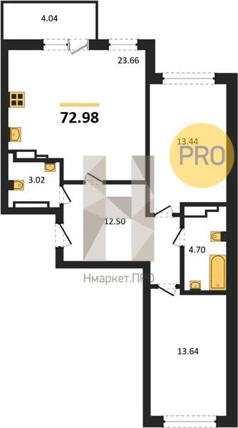 Квартира: 2 к 72,98 кв.м., 13 этаж в комплексе Есенин, 1 очередь, корп.1, сдача: 4кв. , этажей: 16, адрес Верхняя Пышма г., Огнеупорщиков ул., д. 5, литера б, Застройщик: Маркет Сервис.
