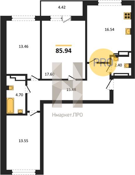 Квартира: 3 к 85,94 кв.м., 13 этаж в комплексе Есенин, 1 очередь, корп.1, сдача: 4кв. , этажей: 16, адрес Верхняя Пышма г., Огнеупорщиков ул., д. 5, литера б, Застройщик: Маркет Сервис.