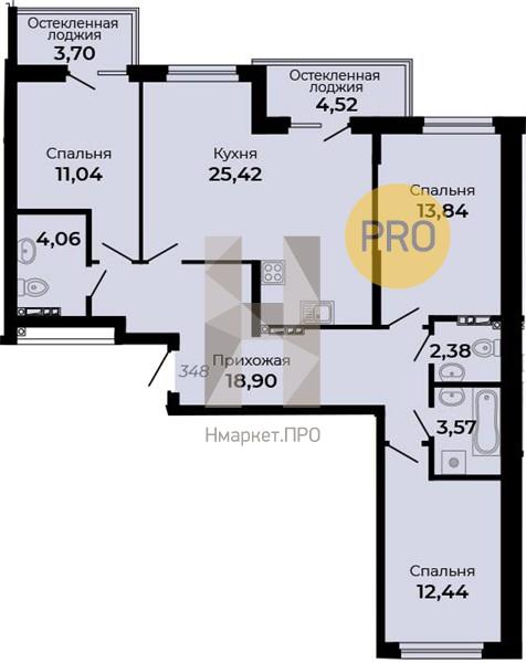Квартира: 3 к 95,76 кв.м., 3 этаж в комплексе Есенин, 1 очередь, корп.1, сдача: 4кв. , этажей: 16, адрес Верхняя Пышма г., Огнеупорщиков ул., д. 5, литера б, Застройщик: Маркет Сервис.