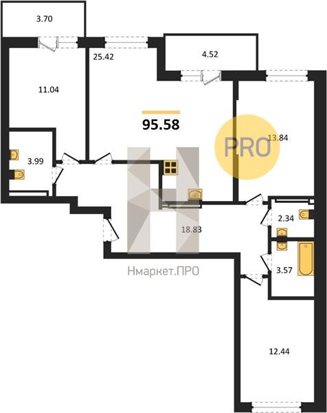 Квартира: 3 к 95,58 кв.м., 8 этаж в комплексе Есенин, 1 очередь, корп.1, сдача: 4кв. , этажей: 16, адрес Верхняя Пышма г., Огнеупорщиков ул., д. 5, литера б, Застройщик: Маркет Сервис.