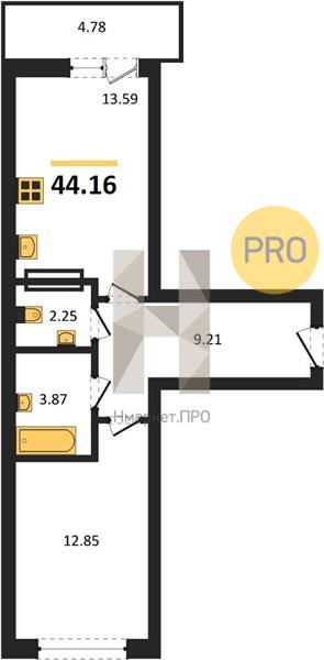 Квартира: 1 к 44,16 кв.м., 9 этаж в комплексе Есенин, 1 очередь, корп.1, сдача: 4кв. , этажей: 16, адрес Верхняя Пышма г., Огнеупорщиков ул., д. 5, литера б, Застройщик: Маркет Сервис.
