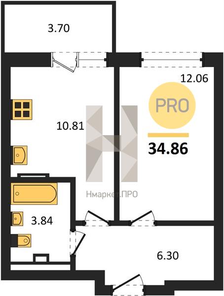 Квартира: 1 к 34,86 кв.м., 12 этаж в комплексе Есенин, 1 очередь, корп.1, сдача: 4кв. , этажей: 16, адрес Верхняя Пышма г., Огнеупорщиков ул., д. 5, литера б, Застройщик: Маркет Сервис.