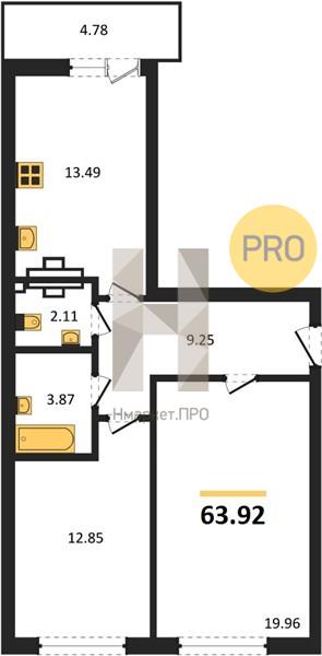 | Общая площадь: | 63.92 м2 |