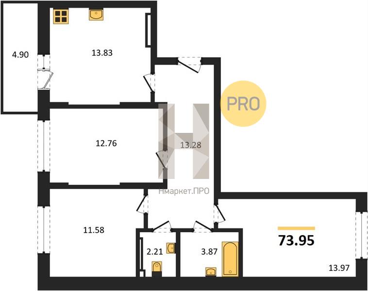 | Общая площадь: | 73.95 м2 |