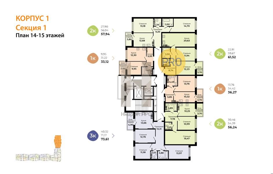 Квартира: 2 к 56,24 кв.м., 14 этаж в комплексе Есенин, 1 очередь, корп.1, сдача: 4кв. , этажей: 16, адрес Верхняя Пышма г., Огнеупорщиков ул., д. 5, литера б, Застройщик: Маркет Сервис.