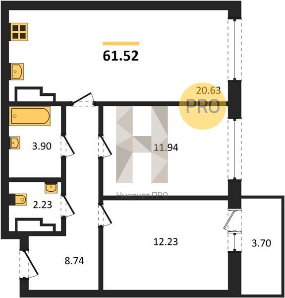 | Общая площадь: | 61.52 м2 |