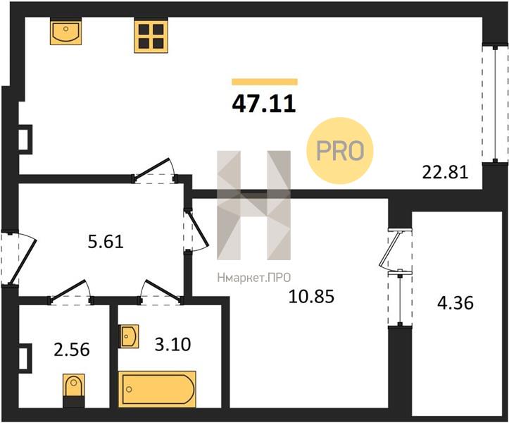 | Общая площадь: | 47.11 м2 |