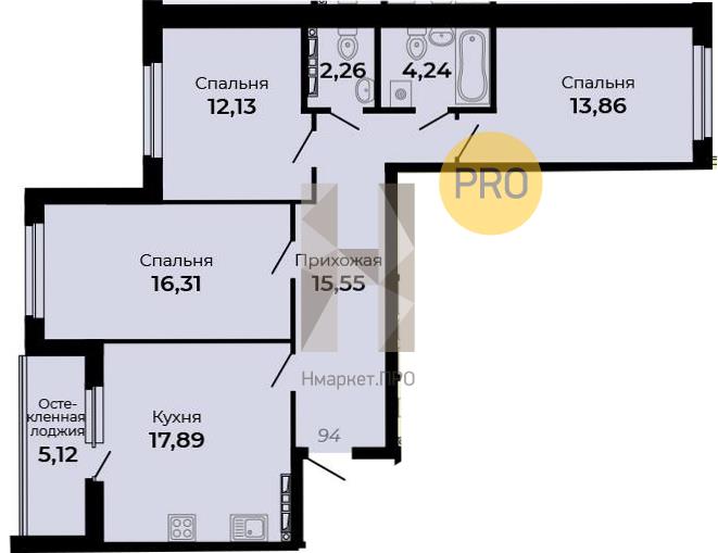 Квартира: 3 к 84,80 кв.м., 4 этаж в комплексе Есенин, 1 очередь, корп.1, сдача: 4кв. , этажей: 16, адрес Верхняя Пышма г., Огнеупорщиков ул., д. 5, литера б, Застройщик: Маркет Сервис.