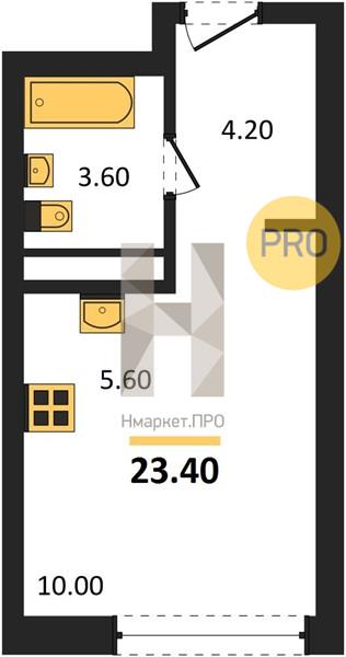 Студия: 23,40 кв.м., 2 этаж в комплексе Интро, 1 очередь, корп.1, сдача: 1кв. , этажей: 21, адрес Екатеринбург г., Патриса Лумумбы ул., д. 54, Застройщик: ГК Характер Девелопмент.