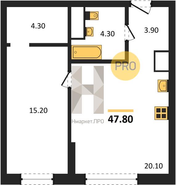 Квартира: 1 к 47,80 кв.м., 3 этаж в комплексе Интро, 1 очередь, корп.1, сдача: 1кв. , этажей: 21, адрес Екатеринбург г., Патриса Лумумбы ул., д. 54, Застройщик: ГК Характер Девелопмент.
