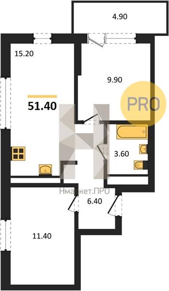 | Общая площадь: | 51.40 м2 |