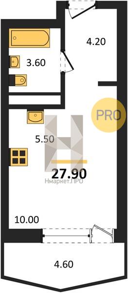 Студия: 27,90 кв.м., 7 этаж в комплексе Интро, 1 очередь, корп.1, сдача: 1кв. , этажей: 21, адрес Екатеринбург г., Патриса Лумумбы ул., д. 54, Застройщик: ГК Характер Девелопмент.